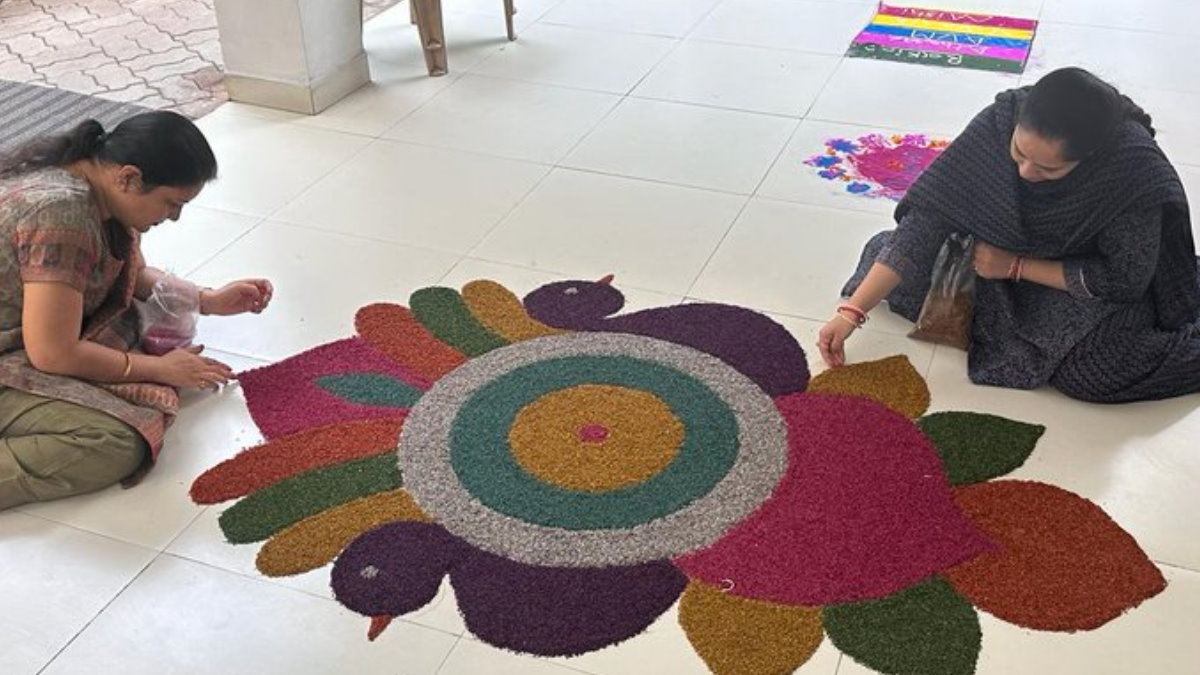 अपनी बेटी और बहू की रंगोली शेयर करते हुए हिंदी में पोस्ट लिखी है, जिसमें उन्होंने लिखा
