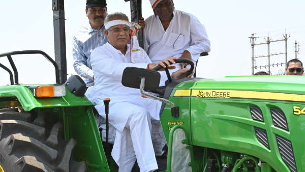सीएम भूपेश बघेल ने किया अक्ति तिहार पर माटी पूजन, ट्रैक्टर चलाकर खेत की जुताई की