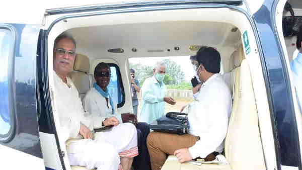 गांव पहुंचते ही अपने दोस्त को सीएम बघेल ने हेलिकॉप्टर से घुमाया और कहा- तुमको कब चश्मा लगा