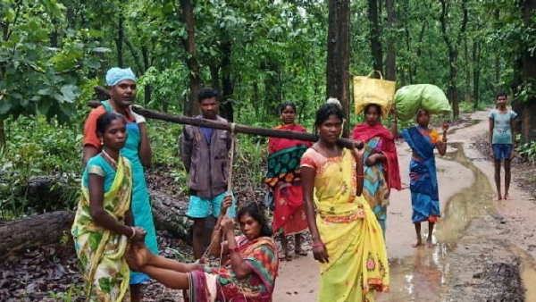 छत्तीसगढ़ः घर तक नहीं पहुंची एंबुलेस तो स्वास्थ्य कर्मियों ने टोकरी से डोला बनाकर महिला को पहुंचाया