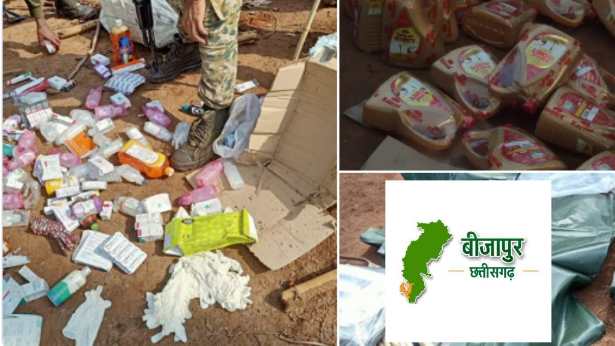 तलाशी अभियान में नक्सलियों की दवाएं और खाद्य सामग्री बरामद की गई हैं।