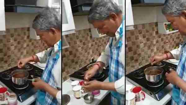 VIDEO: लॉकडाउन में पूर्व सीएम हरीश रावत ने चाय बनाते हुए बताया- यही है मेरे साइनस और गले में खिचखिच की दवा