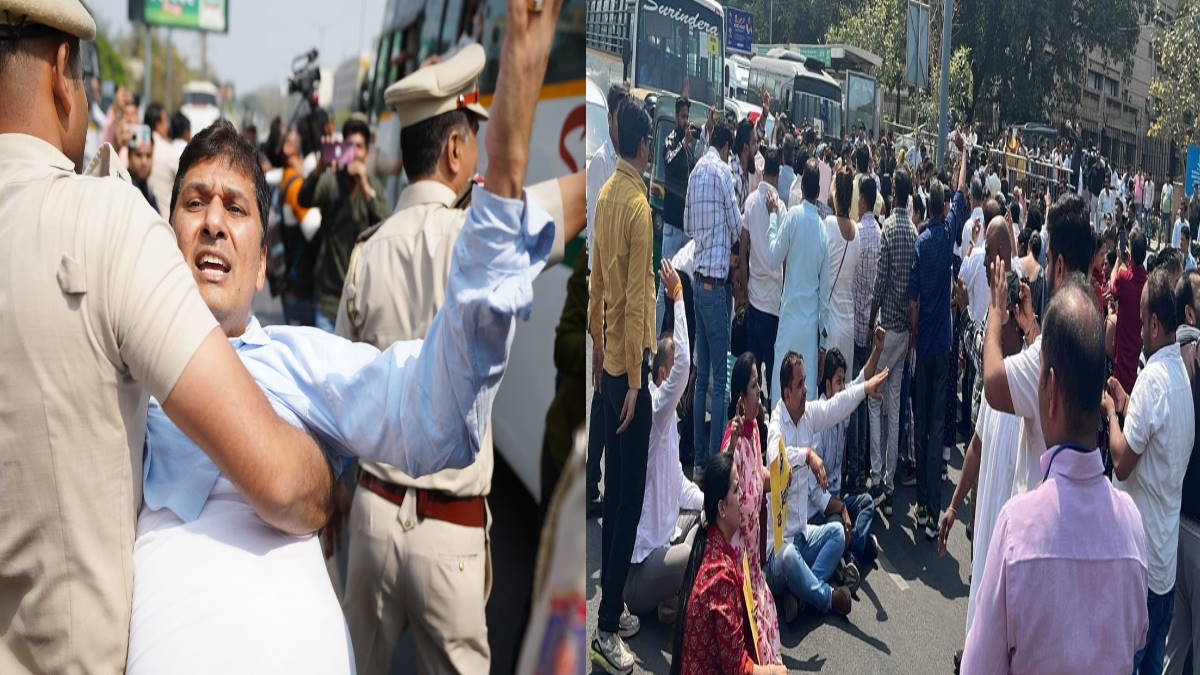 केजरीवाल की गिरफ्तारी के विरोध में AAP ने किया प्रचंड विरोध-प्रदर्शन, कार्यकर्ताओं पे बरसी पुलिस की लाठियां