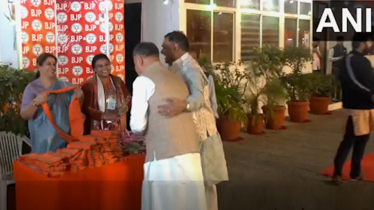 Delhi CM: दिल्ली में कमल खिलाने वाले MLA का BJP मुख्यालय में गुलाब से स्वागत़, सीएम चुनने कौन-कौन पहुंचा?