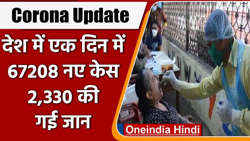 देश में पिछले 24 घंटे में भारत में 67,208 नए कोरोना वायरस केस सामने आए हैं और 2,330 लोगों की मौत हुई है। वहीं बीते 24 घंटे में 1,03,570 लोग कोरोना से रिकवर हुए हैं। देश में कोरोना से अब तक 3,81,903 लोगों की मौत हुई है। वहीं देश में एक्टिव केसों की संख्या 8,26,740 है। कोरोना से अब तक कुल डिस्चार्ज हुए मामलों की संख्या 2,84,91,670 हो गई है। देश में कुल पॉजिटिव मामलों की संख्या 2,97,00,313 है। देश में कोरोना वैक्सीनेशन आंकड़ा 26,55,19,251 है। वहीं बीते 24 घंटे में 34,63,961 वैक्सीन डोज लगाई गई है।