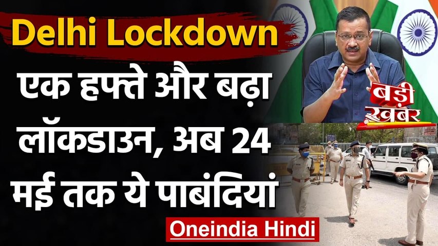 राजधानी में कोरोना के केस में कमी आई है लेकिन दिल्ली सरकार अभी कोई रिस्क नहीं लेना चाहती है इसलिए रविवार को सीएम अरविंद केजरीवाल ने दिल्ली में एक हफ्ते का लॉकडाउन और बढ़ाने का फैसला लिया है। उन्होंने आज ऐलान किया कि कोरोना पर नकेल कसने के लिए हम लॉकडाउन को एक हफ्ते और बढ़ा रहे हैं। उन्होंने कहा कि 24 मई तक राजधानी में यथास्थिति रहेगी, लॉकडाउन के सारे नियम लागू रहेंगे।