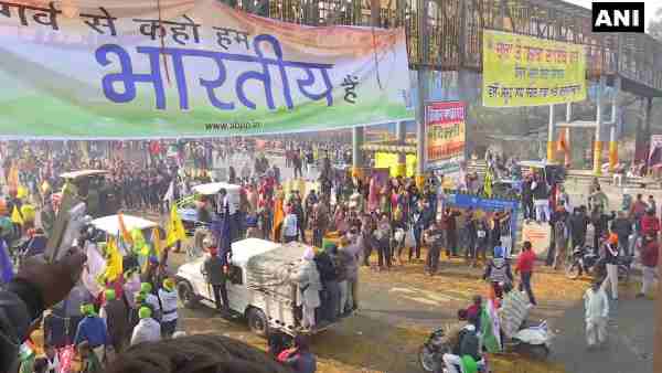 ट्रैक्टर मार्च: दिल्ली के स्वरूप नगर में किसानों पर बरसाए गए फूल