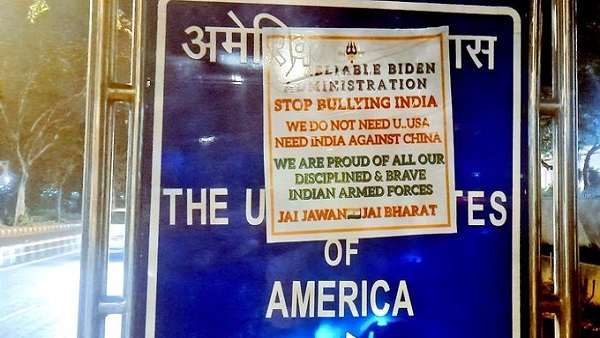 दिल्ली में अमेरिकी दूतावास के बाहर जो बाइडेन के खिलाफ चिपकाया पोस्टर, पुलिस ने किया गिरफ्तार