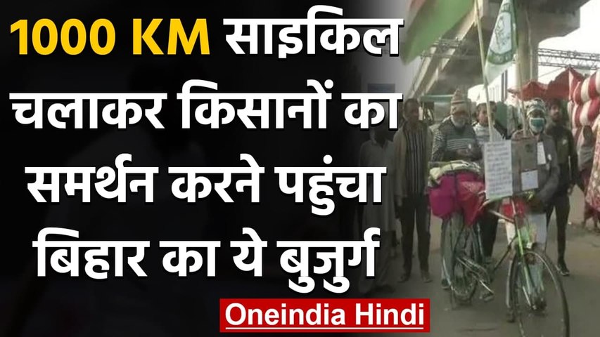 दिल्ली-हरियाणा के टिकरी बॉर्डर पर कृषि कानूनों के खिलाफ प्रदर्शन कर रहे किसानों का समर्थन करने 60 वर्षीय बुजुर्ग सत्यदेव मांझी पहुंचे। सत्यदेव मांझी, बिहार के सीवान जिले के रहने वाले है। उन्होंने 11 दिनों तक लगातार साइकिल चलाकर करीब 1000 किलोमीटर कर सफर तय किया है। समाचार एजेंसी एएनआई से बात करते हुए मांझी ने केंद्र सरकार से अपील की कि वो किसान हितों को देखते हुए तीनें नए कृषि कानून वापस ले ले।