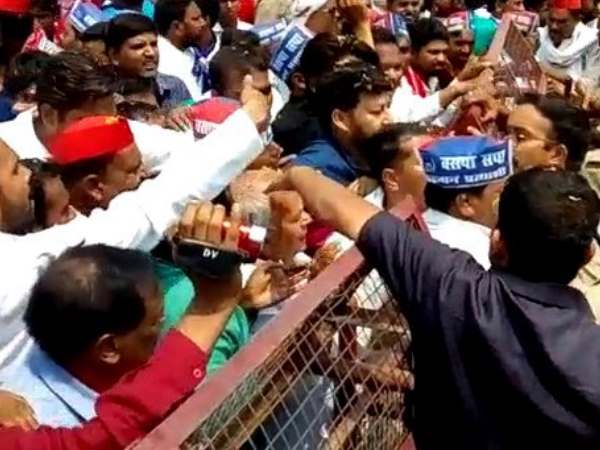 गठबंधन प्रत्याशी के नामांकन में सपा-बसपा के कार्यकर्ताओं से हुई पुलिस की भिड़ंत