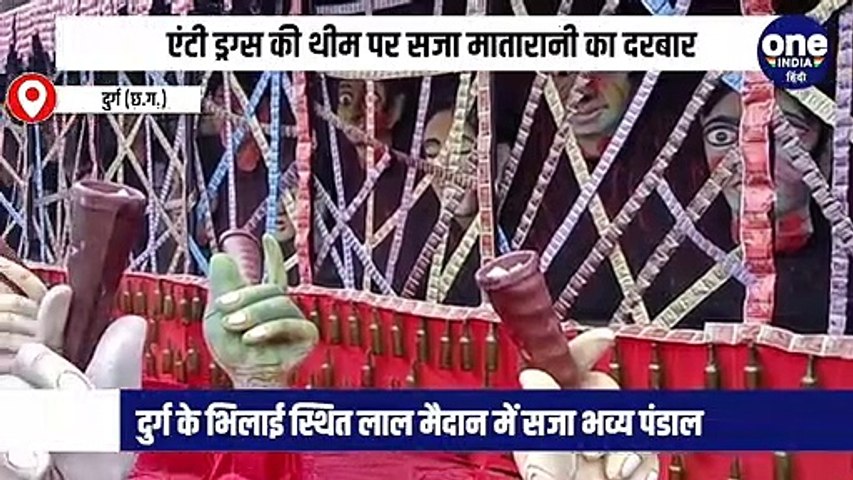 Video: Chhattishgarh में नवरात्रि पर्व पर नशा मुक्ति का संदेश, 25 हजार बोतलों से सजा भव्य पंडाल