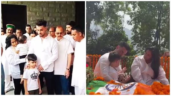 सामने आई तस्वीरों में परिवार सुख राम के शरीर के साथ एक वाहन में बैठा दिखाई दे रहा है क्योंकि वे अंतिम संस्कार के लिए मैदान की ओर ले जाए जा रहे हैं। एक अन्य वीडियो में आहिल आयुष की गोद में बैठे नजर आ रहे हैं। एक वीडियो में अर्पिता अयात को गोद में लिए हुए नजर आ रही हैं। क्योंकि आहिल और आयुष सुख राम के शरीर पर फूल चढ़ाते हैं।