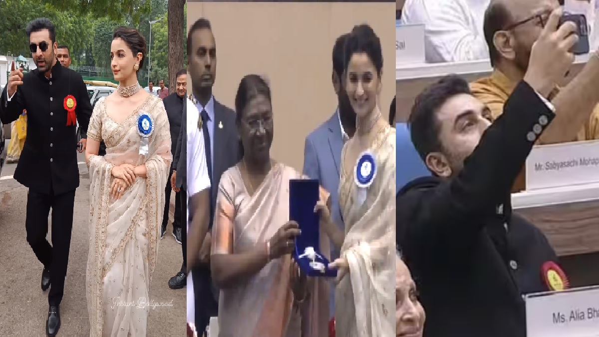 वहीं जब आलिया भट्ट स्टेज पर अपना नेशनल अवॉर्ड लेने पहुंचीं तो सबसे पहले उन्होंने स्टेज को चूमा और फिर आगे बढ़ीं। इस दौरान ऑडियंस में बैठे रणबीर कपूर अपने मोबाइल पर अपनी पत्नी की वीडियो बनाते हुए दिखाई दिए। साथ ही उनके चेहरे पर पत्नी को सम्मान मिलने की खुशी भी साफ झलक रही थी। वहीं आलिया भट्ट पारंपरिक साड़ी पहनकर नेशनल अवॉर्ड लेते हुए बहुत ही खूबसूरत लग रही थीं।