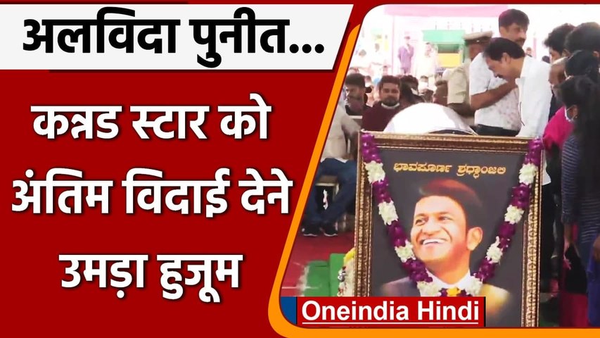 बेंगलुरू, 30 अक्टूबर। कन्नड़ फिल्मों के सुपरस्टार पुनीत राजकुमार का दिल का दौरा पड़ने के कारण शुक्रवार 29 अक्तूबर को निधन हो गया। उनके पार्थिव शरीर को कांतीरवा स्टेडियम में रखा गया है जहां फैंस की भीड़ को आप देखकर अंदाजा लगा सकते हैं कि एक्टर के लिए उनके दिल में कितना सम्मान था। स्टेडियम में जुटी भीड़ को देखकर ही अंदाजा लग रहा है कि अपने चहेते सितारे को खो देने पर उनके फैंस पर क्या गुजर रही है। पुनीत राजकुमार एक केवल एक्टर ही नहीं थे वो कर्नाटक में जरूरतमंदों के लिए मसीहा थे। उनको यहां लोग भगवान जैसे पूजते हैं।