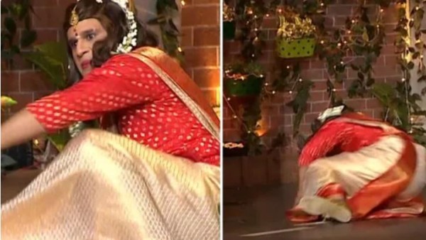 Video: सेट पर धड़ाम से गिरे कॉमेडियन कृष्णा, कपिल शर्मा से बोले- दोबारा साड़ी पहनने को मत कहना