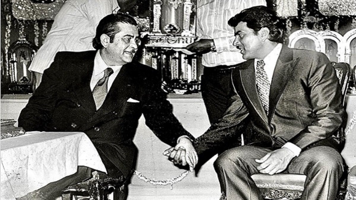 हिंदी सिनेमा के दिग्गज एक्टर धर्मेंद्र ने अपने इंस्टाग्राम अकाउंट पर राज कपूर के साथ अपनी एक थ्रो बैक तस्वीर शेयर की है। ये ब्लैक एंड वाइट तस्वीर किसी इवेंट की लग रही है, जहां दोनों सुपरस्टार फॉर्मल सूट पहने हुए नजर आ रहे हैं। दोनों एक-दूसरे के बगल की सीटों पर बैठकर बातचीत करते दिख रहे हैं। तस्वीर में देखा जा सकता है कि राज कपूर ने धर्मेंद्र का हाथ पकड़ा हुआ है।