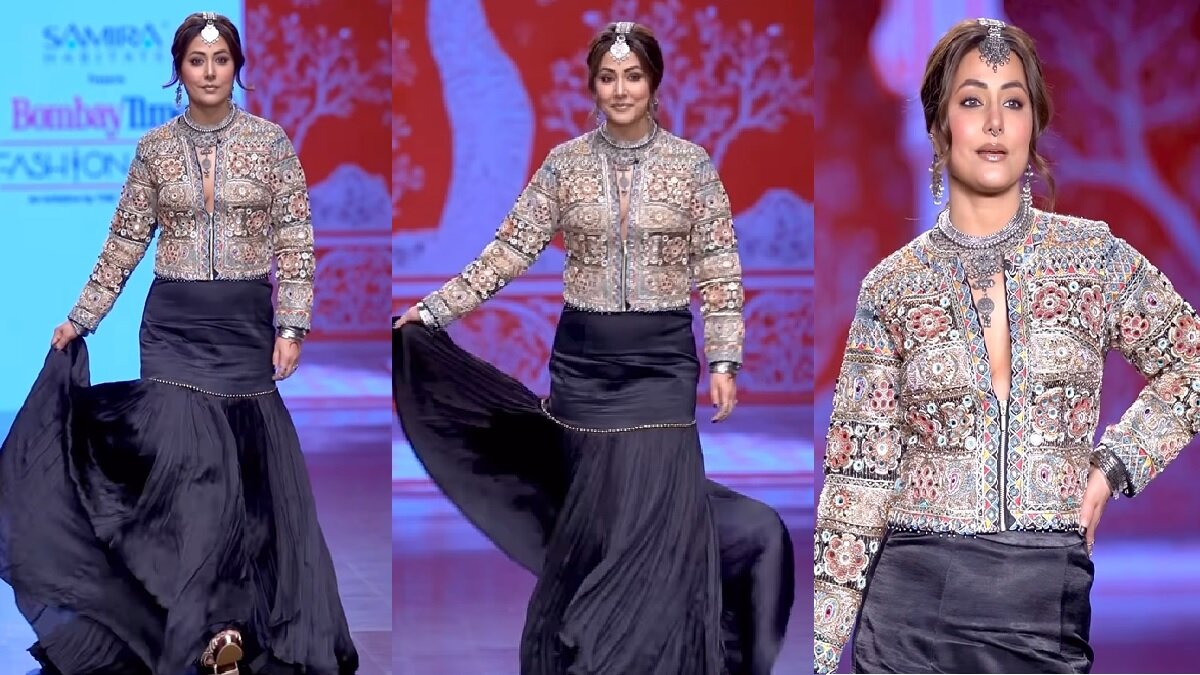 आपको बता दें कि रैंप वॉक करते हुए हिना खान का लुक बहुत ही बढ़िया लग रहा था। उन्होंने ब्लैक कलर के आउटफिट के साथ हैवी कढ़ाई वाली जैकेट पहन रखी थी, जिससे उनका लुक और ज्यादा अच्छा लग रहा था। हिना ने अपने लुक को सिल्वर ज्वैलरी के साथ कंप्लीट किया था। उन्होंने मांगटीका, नेकलेस और ब्रेसलेट पहना था।