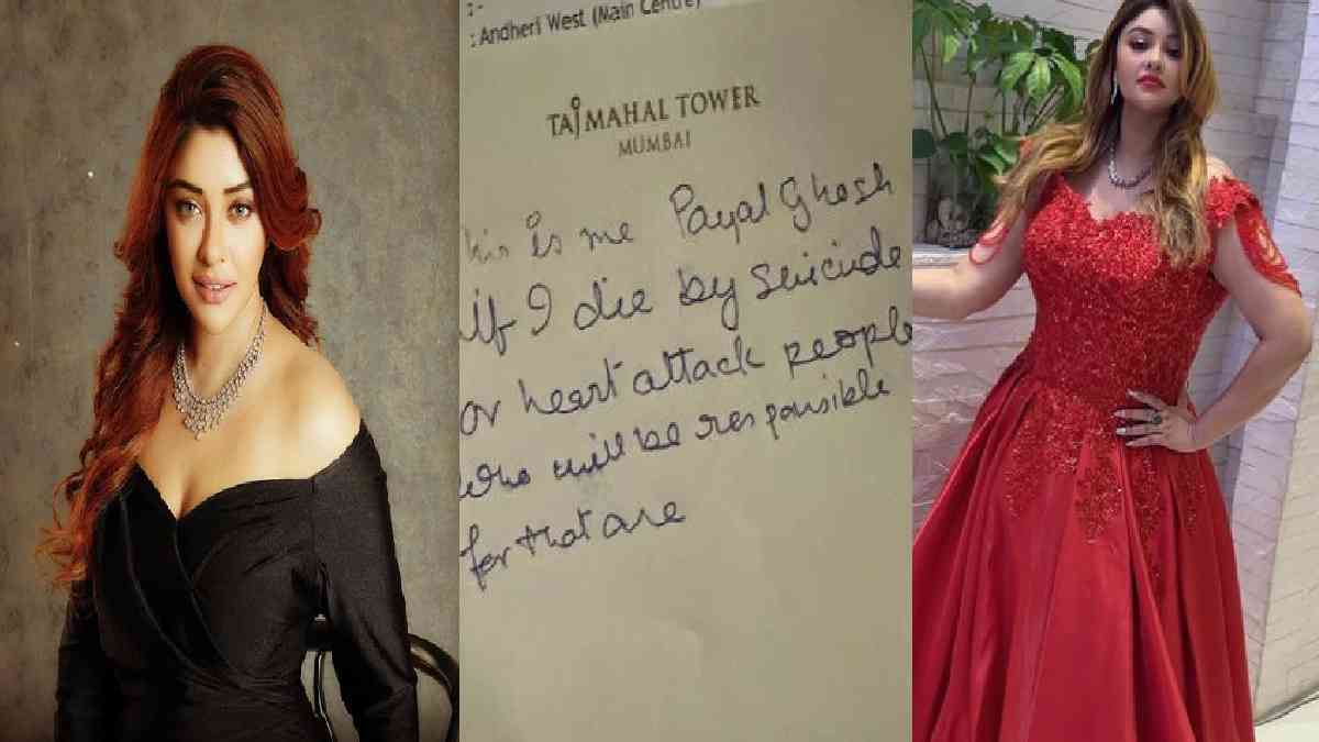 Payal Ghosh: बॉलीवुड एक्ट्रेस पायल घोष इस समय सुर्खियों में छाई हुई हैं। फिल्म मेकर अनुराग कश्यप के खिलाफ 'मी टू' आरोप लगाने वाली एक्ट्रेस ने हाल ही में सोशल मीडिया पर एक सुसाइड नोट का एक स्नैपशॉट शेयर किया है। इस सुसाइड नोट के वायरल होने के बाद से ही लोग पायल घोष को लेकर चर्चा कर रहे हैं। आपको बता दें कि इस सुसाइड नोट में पायल घोष में उन लोगों के नाम सामने लाने की धमकी दी है जो उनकी मौत के लिए जिम्मेदार होंगे। हालांकि सोशल मीडिया पर वायरल हो रही तस्वीर को देखकर ऐसा लग रहा है कि ये सुसाइड नोट अधूरा है।