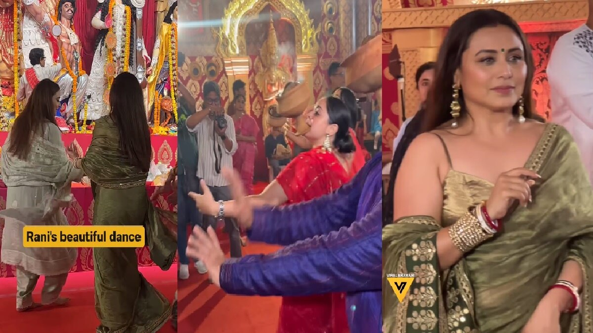 आपको बता दें कि बॉलीवुड एक्ट्रेस रानी मुखर्जी के मुंबई स्थित घर पर पछिले कई वर्षों से नवरात्रि के समय दुर्गा पूजा मनाई जाती हैं। इस पूजा में रानी मुखर्जी का पूरा परिवार शामिल होता है। वहीं पंडाल में मौजूद रानी मुखर्जी का डांस वीडियो सोशल मीडिया पर तेजी से वायरल हो रहा है। वो वैभवी मर्चेंट और काजोल की बहन तनीषा मुखर्जी के साथ मां दुर्गा के सामने पारंपरिक डांस करती दिखाई दीं। उनके फैंस उनकी जमकर तारीफ कर रहे हैं।