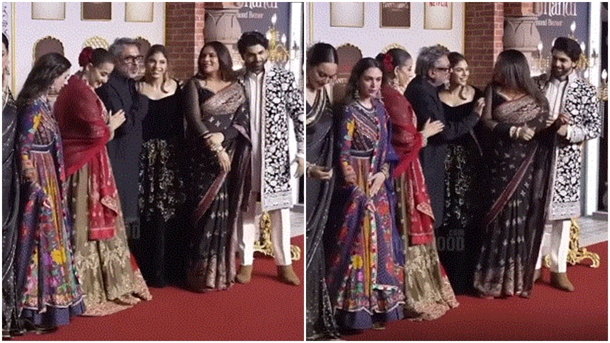 दरअसल वीडियो में देखा जा सकता है कि, सोनाक्षी सिन्हा, अदिति राव हैदरी, मनीषा कोइराला, संजय लीला भंसाली और उनकी भांजी शरमीन हीरामंडी के प्रीमियर में एकसाथ नजर आए। तभी वहां अभिनेत्री ऋचा चड्ढा पहुंचती हैं और तभी वह सबसे मुलाकात करती हैं। इसके बाद उन्हें कैमरा मैन सबके साथ पोज देने के लिए कहता है तो एक्ट्रेस संजय लीला भंसाली के बगल में खड़ी हो जाती हैं।
