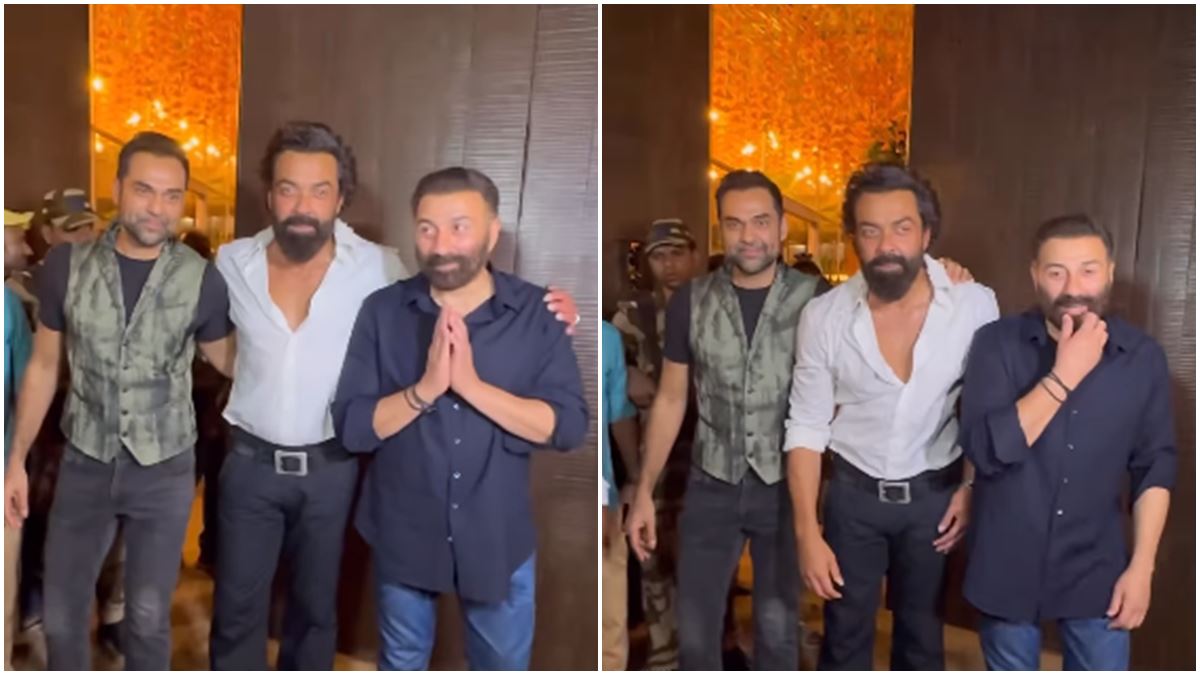 अब इस संगीत फंक्शन से एक वीडियो सामने आया है। जिसमें सनी देओल, बॉबी देओल और अभय देओल को एकसाथ देखा गया। तीनों ने पैपराजी को साथ में पोज दिया। इस दौरान अभय, सनी और बॉबी बेहद कैजुअल लुक में नजर आए। जहां सनी देओल ब्लू डेनिम जींस और ब्लैक शर्ट में दिखाई दिए, तो वहीं बॉबी देओल भी व्हाइट शर्ट और ब्लैक पैंट में नजर आए। इसके अलावा अभय देओल ब्लैक टी शर्ट और वेस्ट कोट के साथ डार्क ब्लू जीन्स में काफी डेशिंग लग रहे थे।