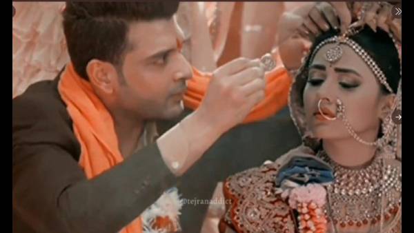 दरअसल सोशल मीडिया पर एक तस्वीर खूब वायरल हो रही है, जिसमें करण कुंद्रा और तेजस्वी प्रकाश शादी के जोड़े में नजर आ रहे हैं। इस तस्वीर में करण को तेजस्वी की मांग भरते हुए देखा जा सकता है। लेकिन हम आपको बता दें कि वायरल हो रही ये तस्वीर झूठी है। दोनों के किसी फैन ने इस तस्वीर को एडिट किया है। फोटो भले भी झूठी हो, लेकिन फैन तो जल्द से जल्द दोनों की शादी के लिए काफी एक्साइटेड हैं।