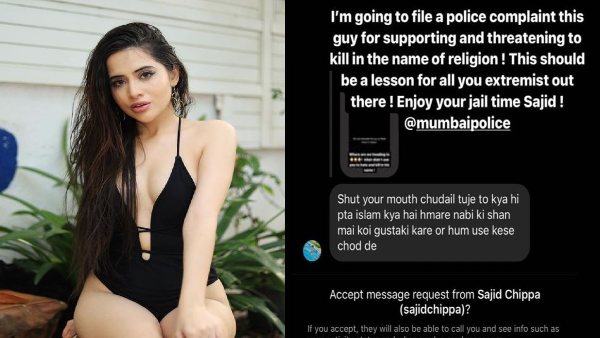 एक यूजर ने उर्फी को गाली भरा मैसेज लिखा। यूजर ने लिखा कि "अपना मुंह बंद कर चुड़ैल, तुझे तो क्या ही पता इस्लाम क्या है? हमारे नबी की शान में कोई गुस्ताखी करे और हम उसे कैसे छोड़ दें।" शख्स की इस हरकत के बाद उर्फी आगबबूला हो गईं और उन्होंने साफ कहा कि वो मुंबई पुलिस में उसके खिलाफ शिकायत दर्ज कराने वाली हैं। इसी के साथ उन्होंने अपने पोस्ट में मुंबई पुलिस को भी टैग किया।