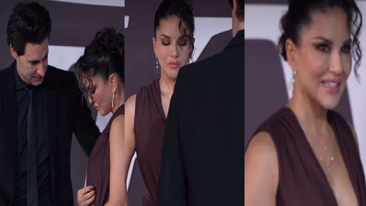 वायरल क्लिप्स में देखा जा सकता है कि सनी लियोनी के आउटफिट में हल्की सी गड़बड़ हो गई थी। इसी दौरान सनी के पति डैनियल वेबर ने इशारे से उनका ध्यान इस ओर दिलाया। सनी ने बिना घबराहट के तुरंत अपने गाउन को ठीक किया और पूरे मौके को बेहद संयम और आत्मविश्वास के साथ संभाल लिया।