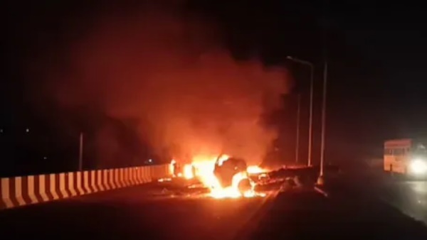 यूपी के एटा में भीषण हादसा, 11 वाहन जलकर राख, एक की जलकर मौत