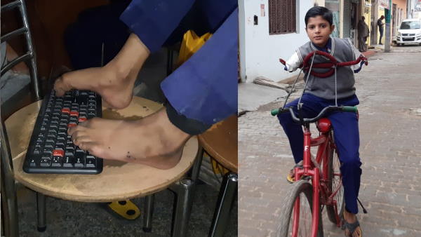 इटावा के अबु के दोनों हाथ नहीं, पैरों से करता है सारे काम, दिव्यांगता को दी मात