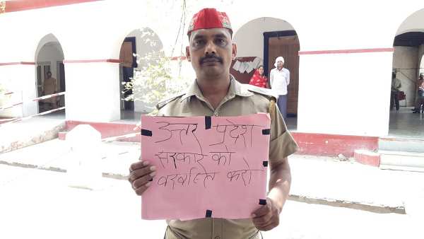 'यूपी सरकार को बर्खास्त करो', तख्ती लेकर सपा की टोपी लगाए डीएम के पास पहुंच गया सिपाही