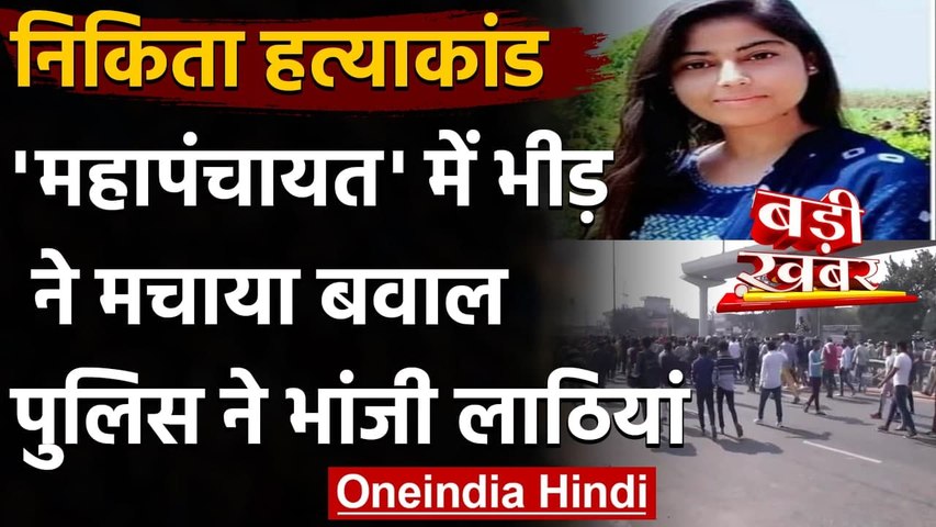 फरीदाबाद। निकिता तोमर मर्डर केस के दोषियों को जल्द से जल्द फांसी देने की मांग को लेकर रविवार को उग्र भीड़ ने फरीदाबाद-बल्लभगढ़ हाईवे को जाम कर दिया। इस दौरान भीड़ को शांत करने के लिए पुलिस को लाठीचार्ज करना पड़ा। बताया जा रहा है कि भीड़ की तरफ से पत्थरबाजी भी की गई। हरियाणा पुलिस के डीसीपी सुमेर सिंह ने बताया कि महापंचायत के दौरान कुछ अराजक तत्व कानून-व्यवस्था को बिगाड़ने की कोशिश कर रहे थे। कई लोगों को हिरासत में लिया गया है। उन्होंने बताया कि महापंचायत की अनुमति नहीं ली गई थी। बता दें, निकिता की हत्या के मामले में बीते गुरुवार को दोनों आरोपियों तौसीफ और रेहान को कोर्ट में पेश किया गया था, जहां से उन्हें 14 दिन की न्यायिक हिरासत में भेजा गया। पुलिस ने दोनों को दो दिन की रिमांड पर रखा था। पुलिस ने हथियार मुहैया कराने वाले आरोपी अजरु को नूंह से गिरफ्तार किया था। उत्तर प्रदेश के बाद अब हरियाणा सरकार भी लव जिहाद के खिलाफ कानून बनाने पर विचार कर रही है।
