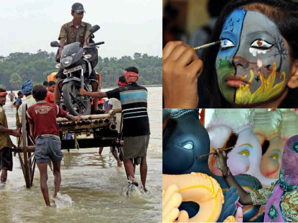 बिहार में बाढ़ से बचने के लिये कुछ इस तरह हो रहा पलायन।