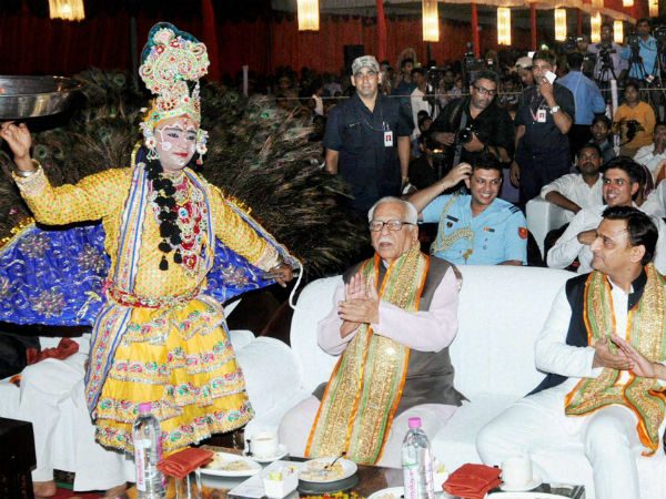 जन्माष्टमी के एक कार्यक्रम में यूपी के सीएम अखिलेश यादव और गर्वनर राम नाइक।