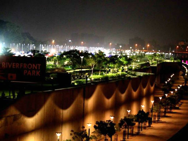 शाम के वक्त खूबसूरत साबरमती रिवरफ्रंट का मनोरम दृश्य।