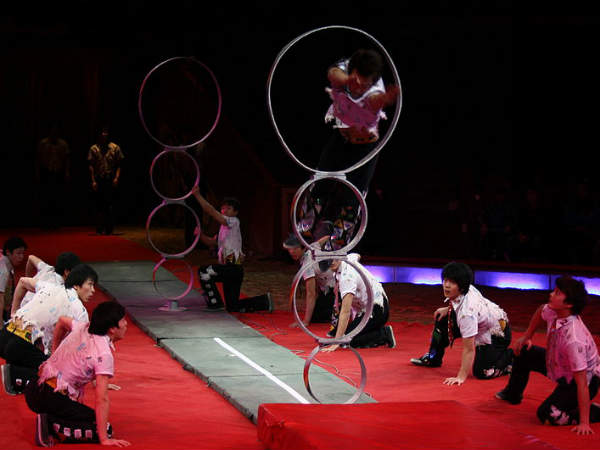 लड़कियों का एक पहिये की साइकिल चलाने पर बैलेंस हो या हाथी का लड़की को अपने सूंड़ पर बिठाना हो या रिंग मास्टर का शेर के साथ खेल हो या जाली के बीच में लड़के लड़कियों का एक तरफ से दूसरे तरफ जाना हो, यह सब आश्चर्यचकित होने पर मजबूर करता है लेकिन इतने जोखिम भरे करतब दिखाने में वे जरा भी नहीं हिचकते।