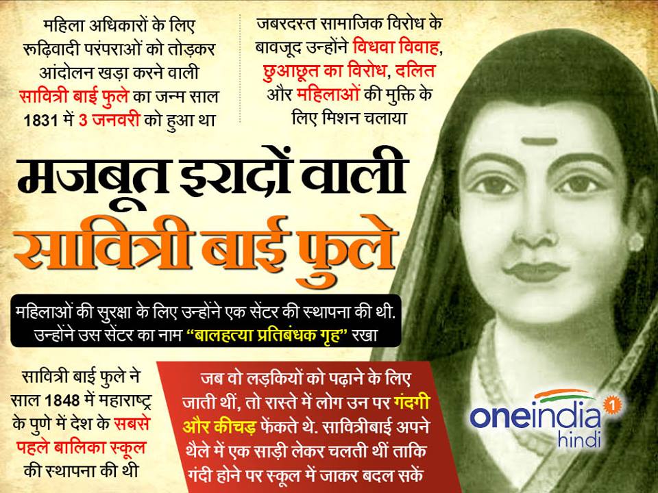 आपको बता दें कि भारत की इस महान बेटी का जन्म 3 जनवरी 1831 को एक मराठी परिवार में हुआ था। सावित्रीबाई फुले का विवाह 1840 में ज्योतिबा फुले से हुआ था। समाज की रूढ़ियों को तोड़ने वाली सावित्रीबाई फुले ने अपने पति ज्योतिराव गोविंदराव फुले के साथ मिलकर स्त्रियों के अधिकारों और शिक्षा के लिए बहुत से कार्य किए।