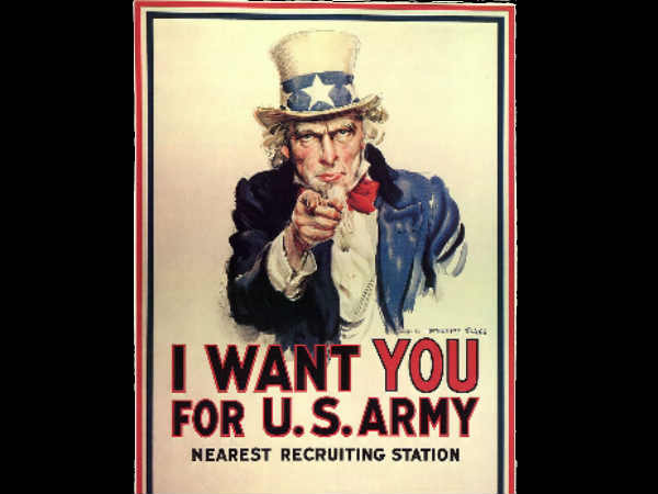 - अंकल सैम के साथ तस्वीर में लिखा था, 'आई वांट यू फॉर यूएस आर्मी।'