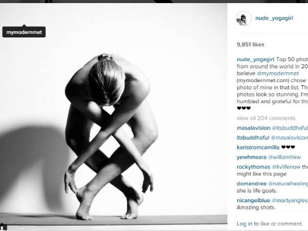 इन तस्वीरों में योगा करने वाली महिला बिना कपड़ों के भी अश्लील नहीं लग रही है और उसका मकसद साफ झलकता है कि उसने यह फोटो शूट केवल लोगों को योगा के लिए प्रेरित करने के लिए कराया है जो उन्हें शारीरिक और मानसिक रूप से फिट रखेगा। इस महिला की पहचान उजागर नहीं है। बस इतना पता है कि इसकी उम्र 25 साल है और पिछले 10 सालों से योगा कर रही हैं।