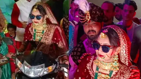 फिरोजाबाद, 14 दिसंबर: शादियों के इस सीजन के बीच उत्तर प्रदेश के फिरोजाबाद में दुल्हन की एंट्री चर्चा का विषय बनी हुई है। यहां शादी के जोड़े में ब्लैक गॉगल लगाए दुल्हन जब पहुंची तो सबकी नजरें टिकीं रह गईं। दुल्हन ने स्कूटी के पीछे वाली सीट पर दूल्हे को बैठाया और स्टेज तक पहुंची। दुल्हन के पहुंचते ही लोगों ने पुष्पवर्षा कर तालियों से उसका स्वागत किया।