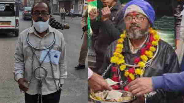 फिरोजाबाद: खुद को बेडियों में जकड़कर मतदान केंद्र पहुंचा प्रत्याशी, देखकर मतदाता रह गए हैरान