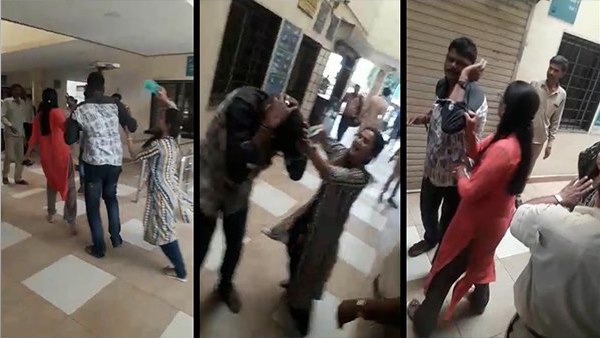 युवक-युवतियों के झगड़े को आप वीडियो में देख सकते हैं। जब युवतियां युवक को थप्पड़ और चप्पल मार रही थीं, तो पुलिस का जवान वहां पहुंच जाता है। मगर, युवतियां फिर भी नहीं रुकीं। युवतियां उसे गाली भी देने लगीं। उन्होंने कहा कि हम तेरी वजह से बहुत डिस्टर्ब हुई हैं। वहीं, कुछ लोगों ने भी युवक को फटकारा। बाद में पुलिस ने युवक को पकड़ लिया।