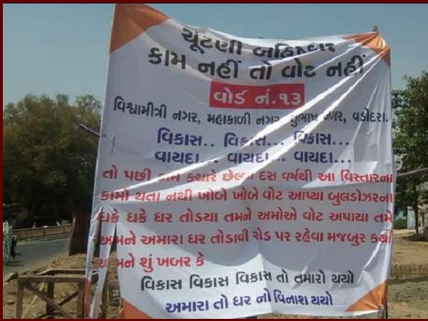 Gujarat News, गांधीनगर। वर्ष 2014 के लोकसभा चुनाव में जिस सीट पर प्रधानमंत्री नरेंद्र मोदी 5 लाख से भी ज्यादा वोटों से जीते थे, इस बार वहां के लोग राजनेताओं से खास नाराज हैं। जी हां, वडोदरा शहर की विश्वामित्री रेलवे स्टेशन सोसायटी के सिटीजंस इस बार वोट देने की मूड में नहीं हैं। उनका कहना है कि जो उनके इलाके में वोट मांगने आएंगे, उनका अपमान किया जाएगा। यहां तक कि नेता को जूतों का हार भी पहना सकते हैं।