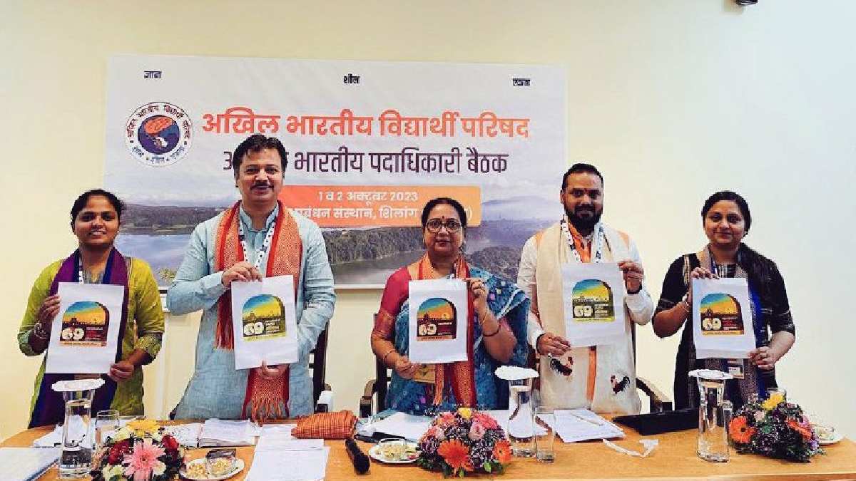 Uttar Pradesh News: अखिल भारतीय विद्यार्थी परिषद का आगामी 30 नवम्बर 2023 से 3 दिसंबर 2023 तक दिल्ली में आयोजित होने वाले अमृत महोत्सवी 69वें राष्ट्रीय अधिवेशन का लोगो शिलांग में चल रही अखिल भारतीय पदाधिकारी बैठक में एबीवीपी की राष्ट्रीय उपाध्यक्ष पूनम सिंह, राष्ट्रीय संगठन मंत्री आशीष चौहान, राष्ट्रीय महामंत्री याज्ञवल्क्य शुक्ल, केंद्रीय कार्य समिति सदस्य निधि त्रिपाठी तथा राष्ट्रीय मंत्री अंकिता पवार द्वारा जारी किया गया।