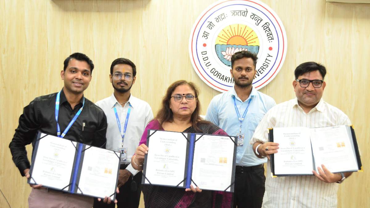 DDU University Gorakhpur News Uttar Pradesh: दीन दयाल उपाध्याय गोरखपुर विश्वविद्यालय के विद्यार्थियों के लिए तकनीकी शिक्षा और औद्योगिक जुड़ाव के क्षेत्र में बेहतर प्लेसमेंट अवसरों के द्वार खुल रहे हैं। विश्वविद्यालय के एम्प्लॉयमेंट ब्यूरो, गाइडेंस एंड प्लेसमेंट सेल की पहल पर विश्वविद्यालय और गोरखपुर स्थित रोबोटिक्स एरा प्राइवेट लिमिटेड के बीच एक एमओयू पर हस्ताक्षर किए गए। इस समझौते का उद्देश्य विद्यार्थियों को व्यावहारिक प्रशिक्षण, तकनीकी दक्षता और रोजगार के क्षेत्र में नई संभावनाएँ उपलब्ध कराना है।