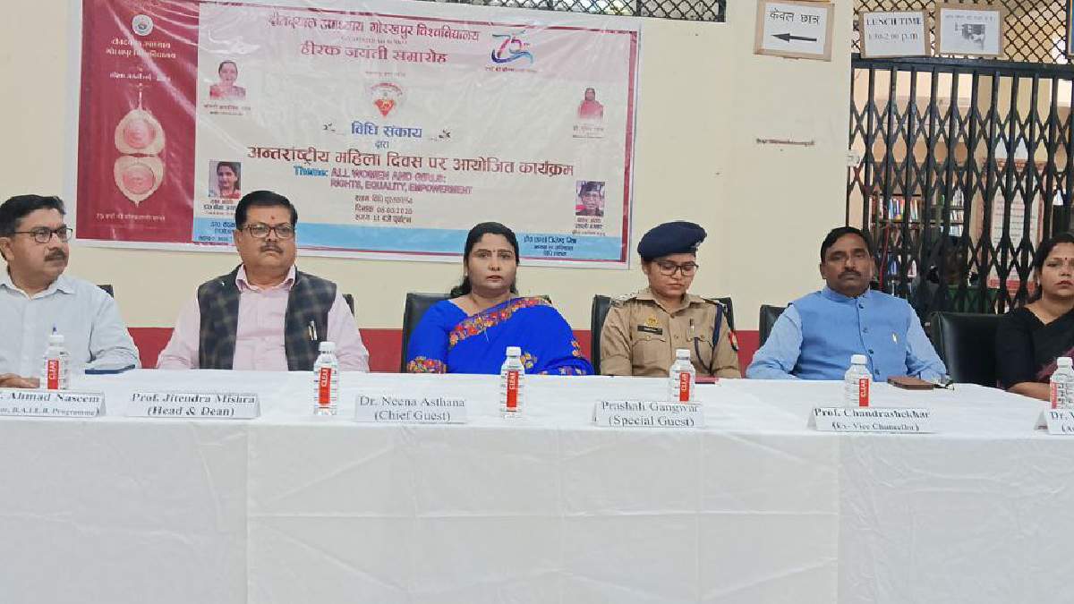 International Women's Day Latest News DDU University: इस कार्यक्रम की मुख्य अतिथि डा. नीना अस्थाना (MBBS DGO) ने नारी को सृजन करता और समाज की धुरी बताया। साथ ही साथ सामाजिक दृष्टिकोण को इंगित करते हुए बताया कि हमें समाज को ऐसे बनाना है जहां बेटी और बेटा दोनो एक समान हो और दोनो का जन्म हर्ष का विषय हो। उन्होंने ने महिलाओं की शिक्षा, समानता, रोजगार, तथा सम्मान पर बल देते हुए कहा कि शिक्षा एक आर्थिक स्वावलम्बन का आधार है और हर महिला को स्वावलम्बी होना आवश्यक है। इन्होने बेटी के साथ-2 बहू को पढ़ाने पर जोर दिया।