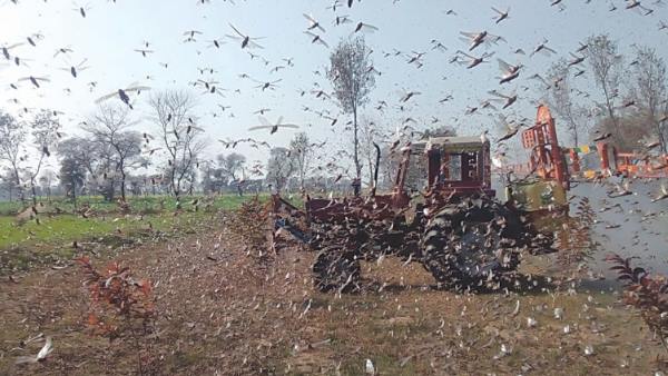 अब गोरखपुर में टिड्डियों ने उड़ाई किसानों की नींद, खेतों में पीट रहे थालियां
