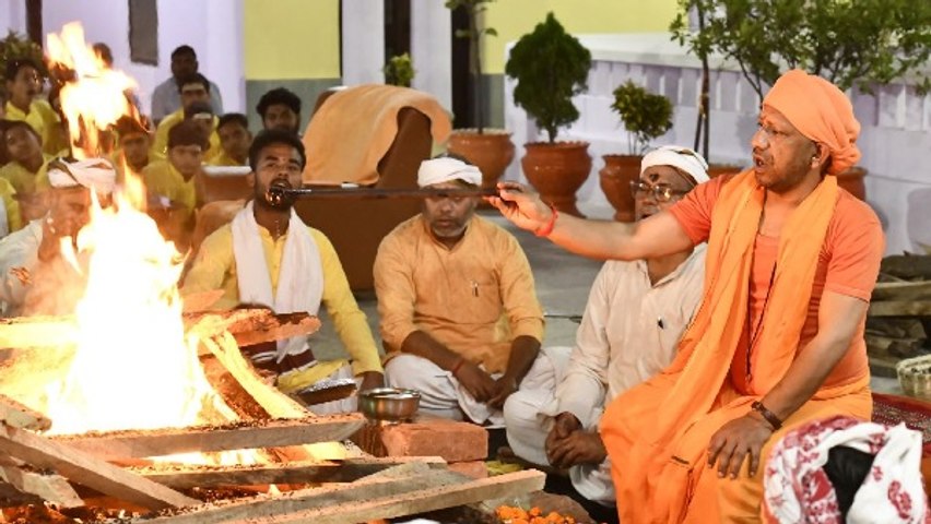 CM Yogi ने लोकल्याण के लिए की विशिष्ट 'महानिशा पूजा', कन्याओं के कल पखारेंगे पांव
