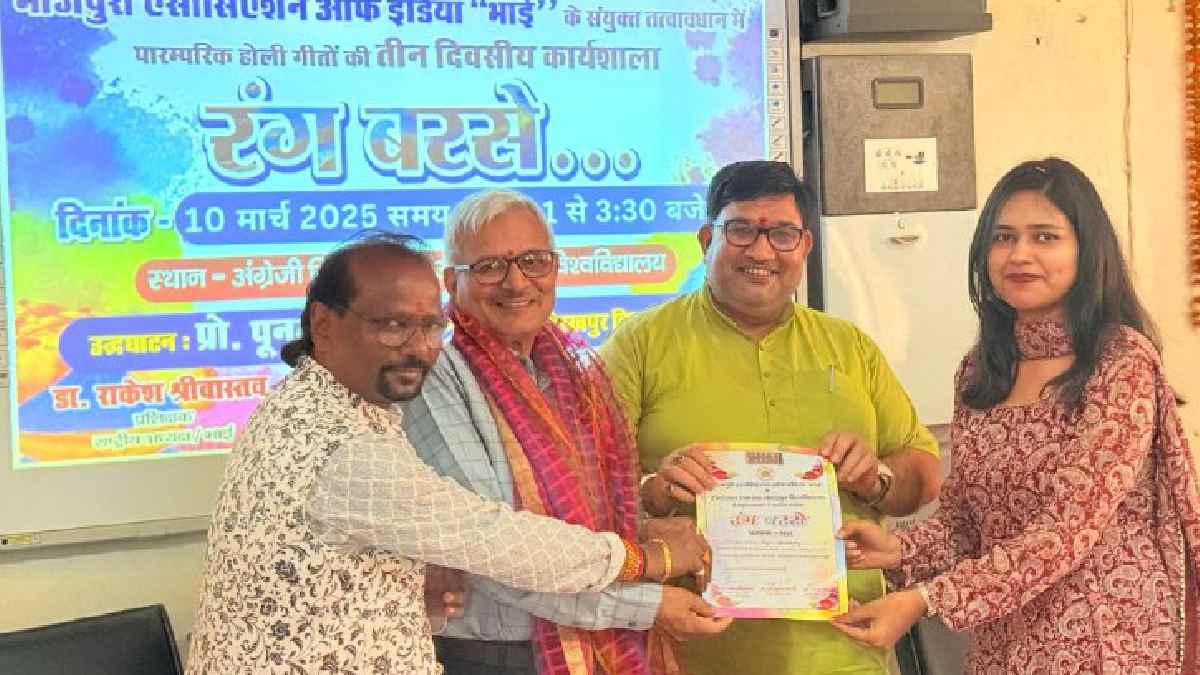 DDU University Latest News Hindi Uttar Pradesh: दीन दयाल उपाध्याय गोरखपुर विश्वविद्यालय में भोजपुरी एसोसिएशन ऑफ इंडिया (भाई) एवं विश्वविद्यालय के संयुक्त तत्वावधान में आयोजित तीन दिवसीय पारंपरिक होली गीत कार्यशाला 'रंग बरसे' का आज भव्य समापन हुआ।
