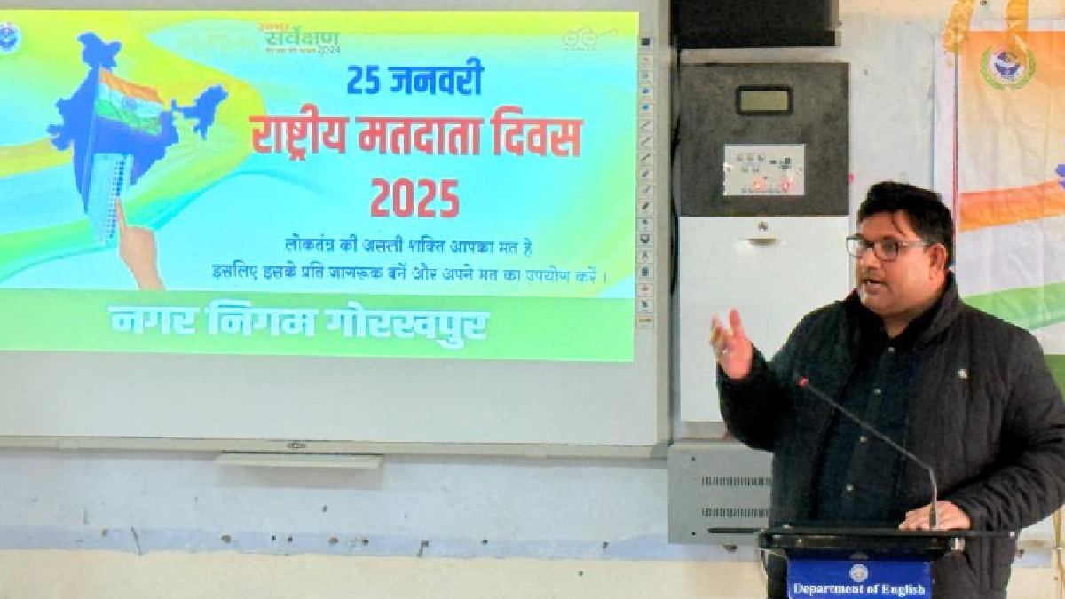 Gorakhpur News: राष्ट्रीय मतदाता दिवस के अवसर पर दीनदयाल उपाध्याय विश्वविद्यालय के प्रांगण में एक विशेष कार्यक्रम का आयोजन किया गया, जिसमें स्वच्छ भारत मिशन (नगरीय) के ब्रांड एम्बेसडर और विश्वविद्यालय के अंग्रेजी विभाग के अध्यक्ष, प्रो. अजय कुमार शुक्ल ने मुख्य अतिथि के रूप में भाग लिया। उन्होंने माल्यार्पण कर युवाओं को मतदान, समाज के विकास, और स्वच्छता को अपनी आदत बनाने के लिए प्रेरित किया। इस मौके पर उन्होंने कहा कि देश के 100 करोड़ मतदाताओं की भूमिका समाज के हर पहलू को बदलने में महत्वपूर्ण होगी। उन्होंने 15 वे मतदाता दिवस एवं इसका इतिहास के साथ इसकी थीम पर विस्तृत प्रकाश डाला ।